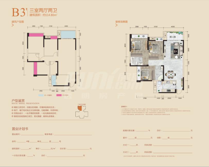精致三房空间,功能分区明确,尽情体验高尚生活。